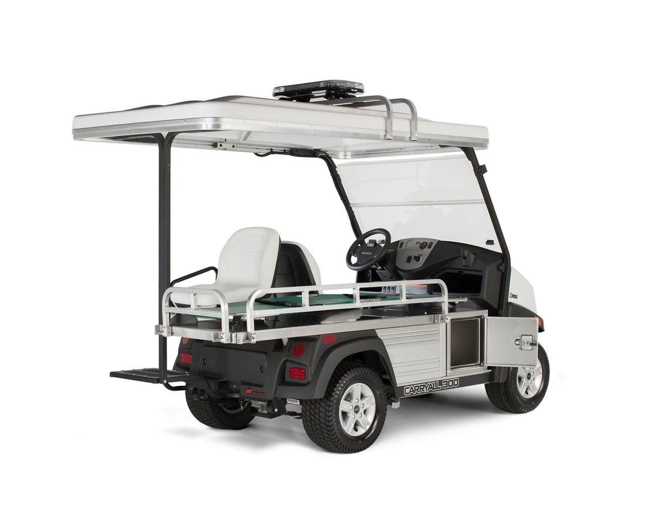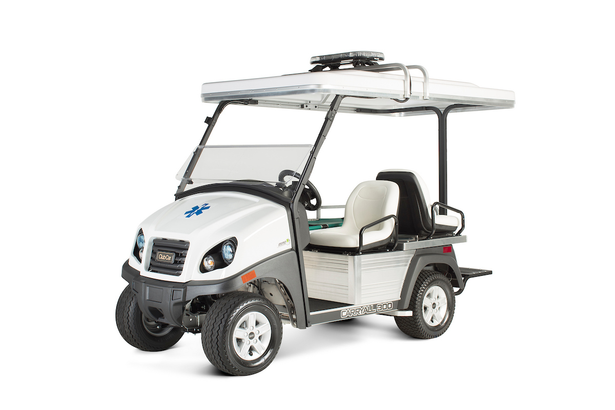 Ambulanssi-golfauto yhdistää Club Car Carryall -alustan luotettavuuden ja ensivastetyön vaatiman varustelun: paaritaso, hoitajan istuin, varustelaatikko ja LED-varoitusvalo. Sähkö tai bensiini.