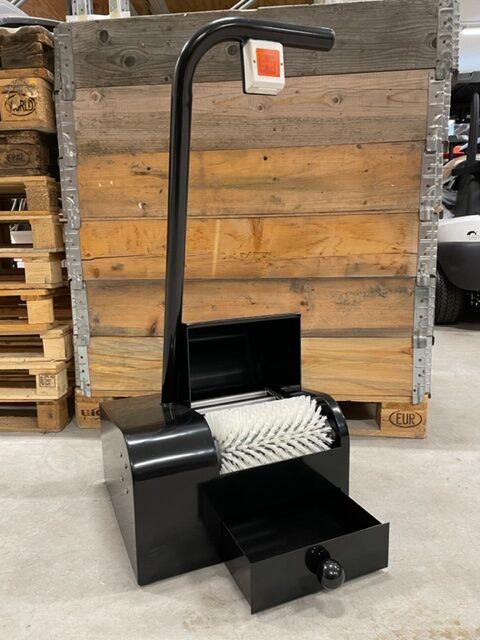 Sähkökäyttöinen kenkäharja puhdistaa pohjat ja nastat tehokkaasti ja nopeasti. Integroidun tyhjennyssäiliön ansiosta roskat kerääntyvät siististi talteen. Kestävä ja helppokäyttöinen ratkaisu klubitalon sisäänkäynnille ja rangelle.