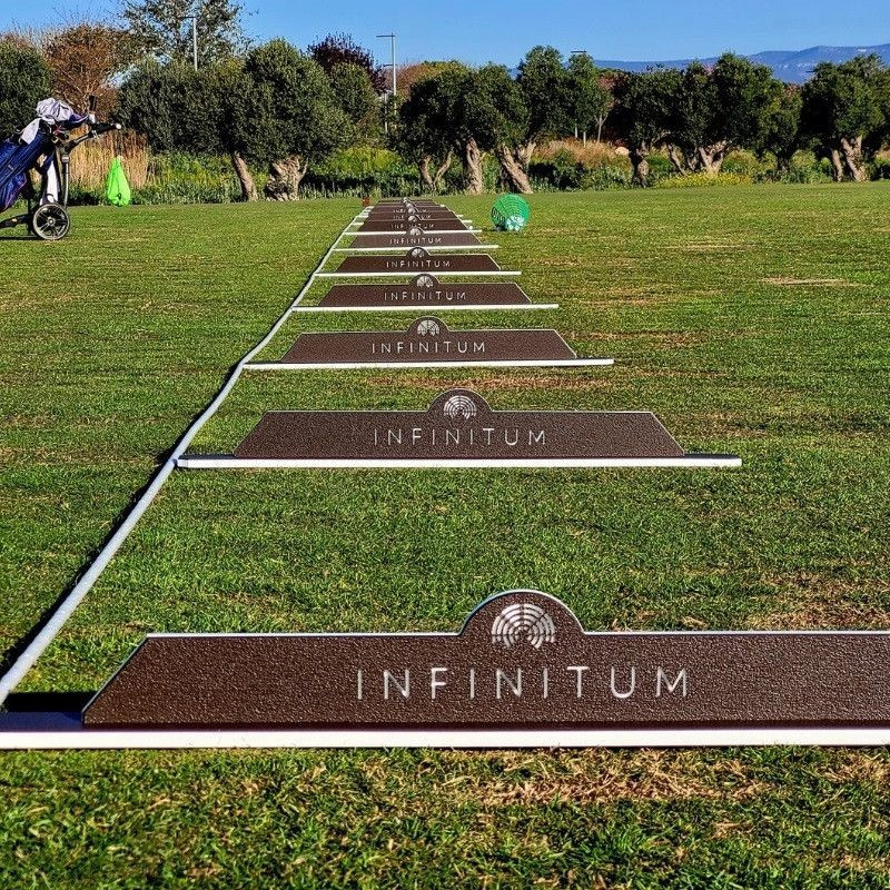 Mittatilaustyönä tehty lyöntipaikkajakaja on valmistettu kerroksellisesta kierrätysmuovista joka on täysin muokattavissa. Valitse haluamasi koko, väri, teksti ja logo. Räätälöi vastaamaan golfkenttäsi ainutlaatuista brändäystä ja tyyliä.