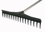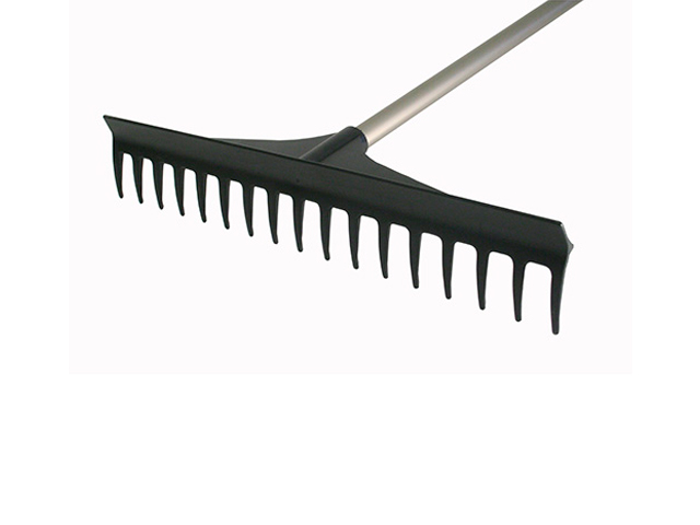 Leveä 49 cm haravanpää tasoittaa bunkkerin nopeasti ja siististi. Taivutettu alumiinivarsi on kevyt ja kestävä, tarjoten ergonomisen työasennon päivittäiseen käyttöön.